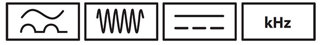 F: this device ensures tripping for all types of AC currents and pulsating DC currents that may appear within an installation. It also ensures no unwanted tripping and detection of high-frequency faults up to 1KHz. The markings for this are shown below.
